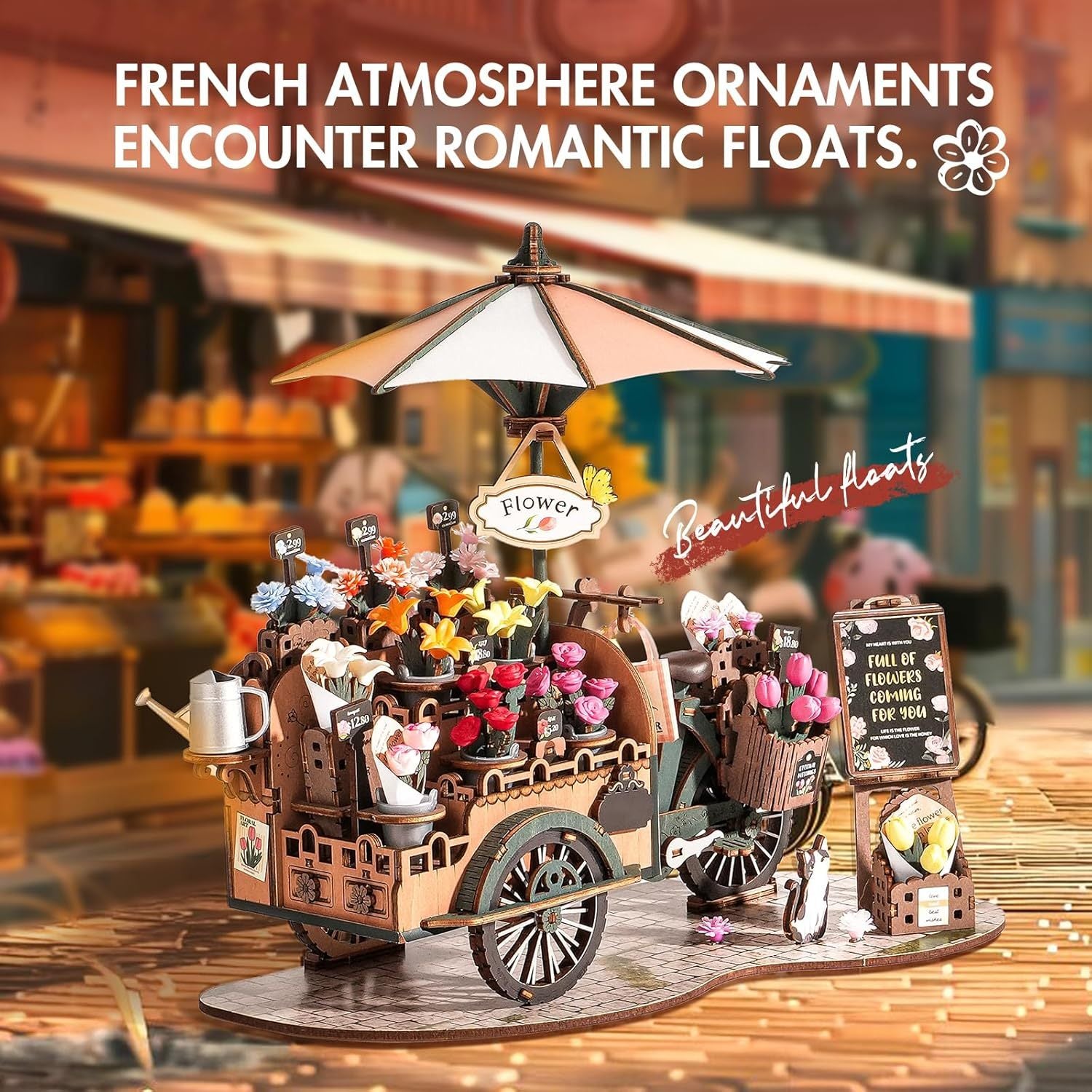 Ideal for children, adults, and craft enthusiasts, this romantic flower cart model makes a thoughtful gift for birthdays, holidays, or special occasions. Once assembled, it serves as a stunning decorative piece and a collectible keepsake.